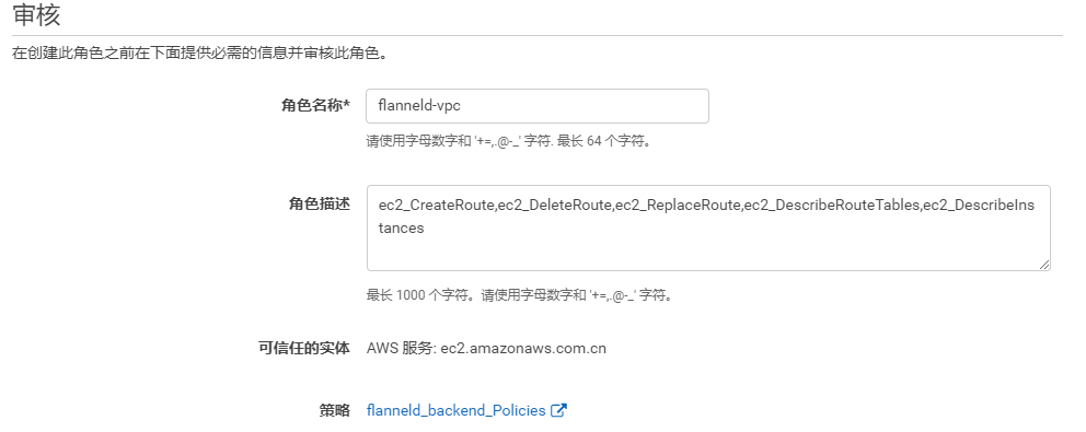 # etcdctl --endpoints https://127.0.0.1:2379 --ca-file=/etc/kubernetes/ssl/ca.pem --cert-file=/etc/kubernetes/ssl/kubernetes.pem --key-file=/etc/kubernetes/ssl/kubernetes-key.pem set /k8s/network/config '{"Network":"10.20.0.0/16", "Backend": {"Type": "aws-vpc", "RouteTableID": ["rtb-d78a2cb3"]} }'